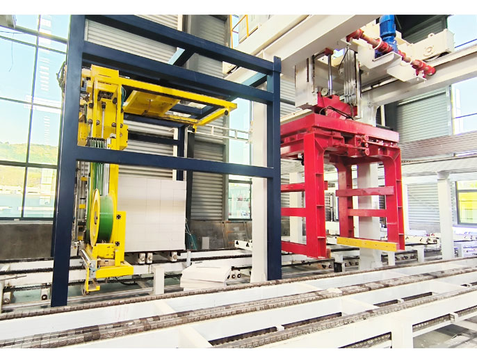 產(chǎn)品分揀和包裝工段:掰扳機(jī)、成品夾具、砌塊/板材輸送線(xiàn)等。完成蒸養(yǎng)出釜的坯體經(jīng)掰分后由包裝輸送設(shè)備進(jìn)行分揀、碼垛、打包并運(yùn)送至堆場(chǎng)。